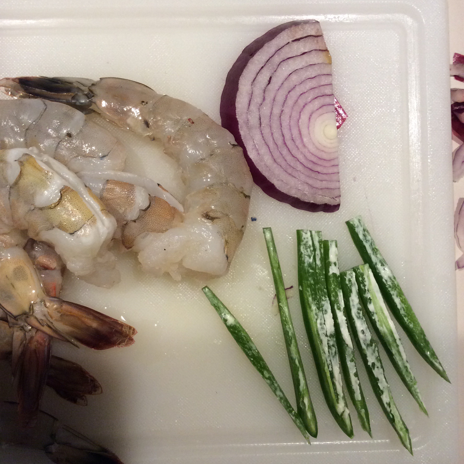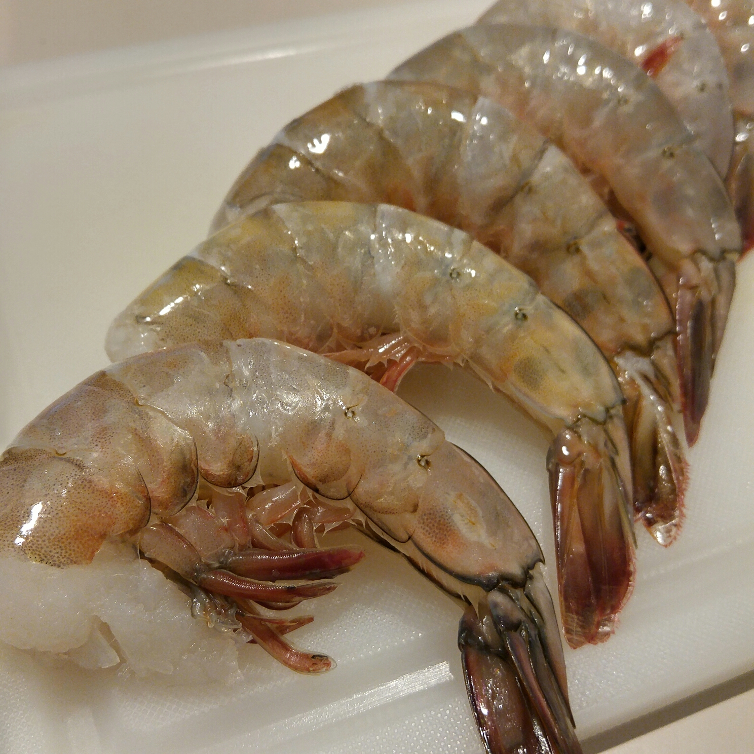 U12 shrimp about to be deveined, leaving the tail on.