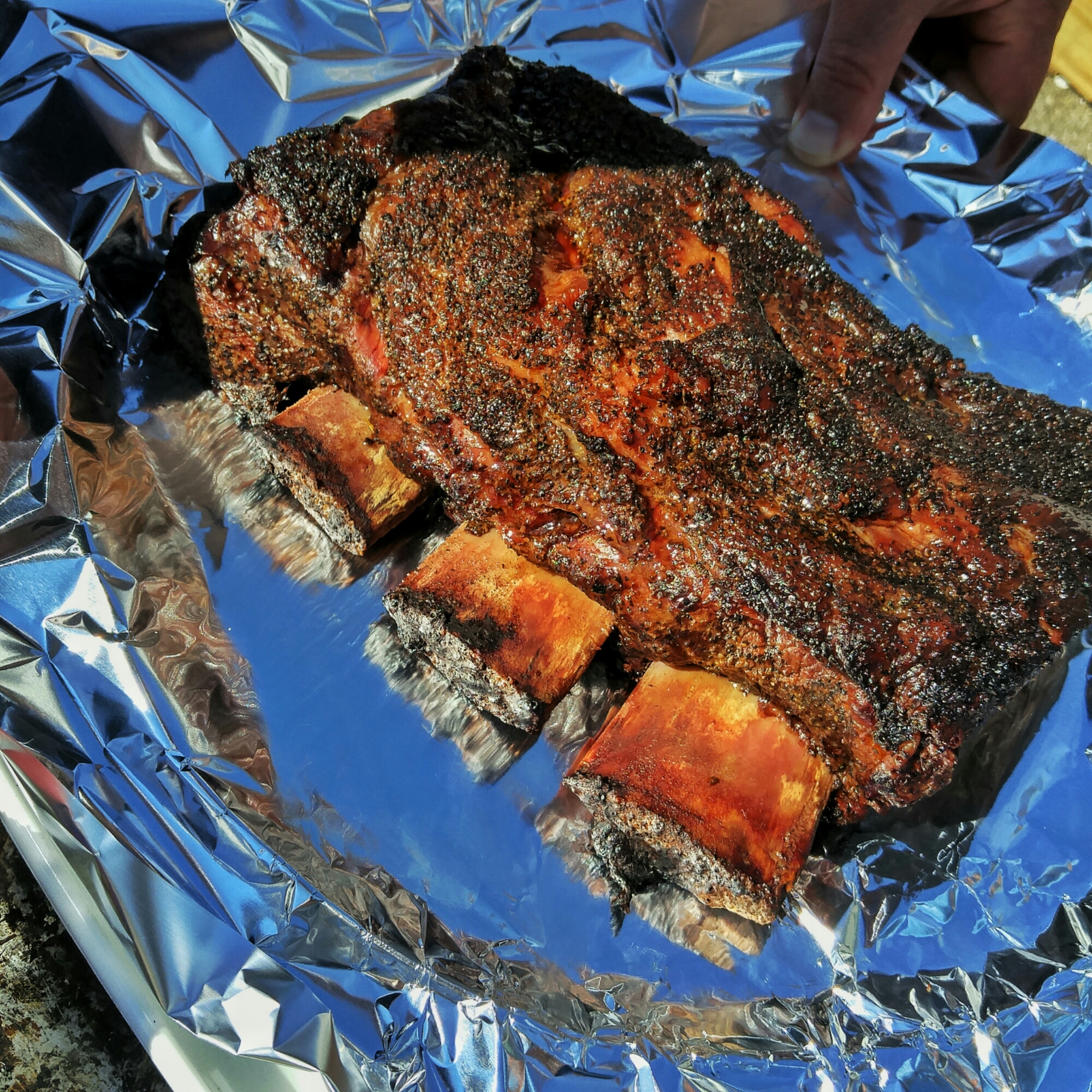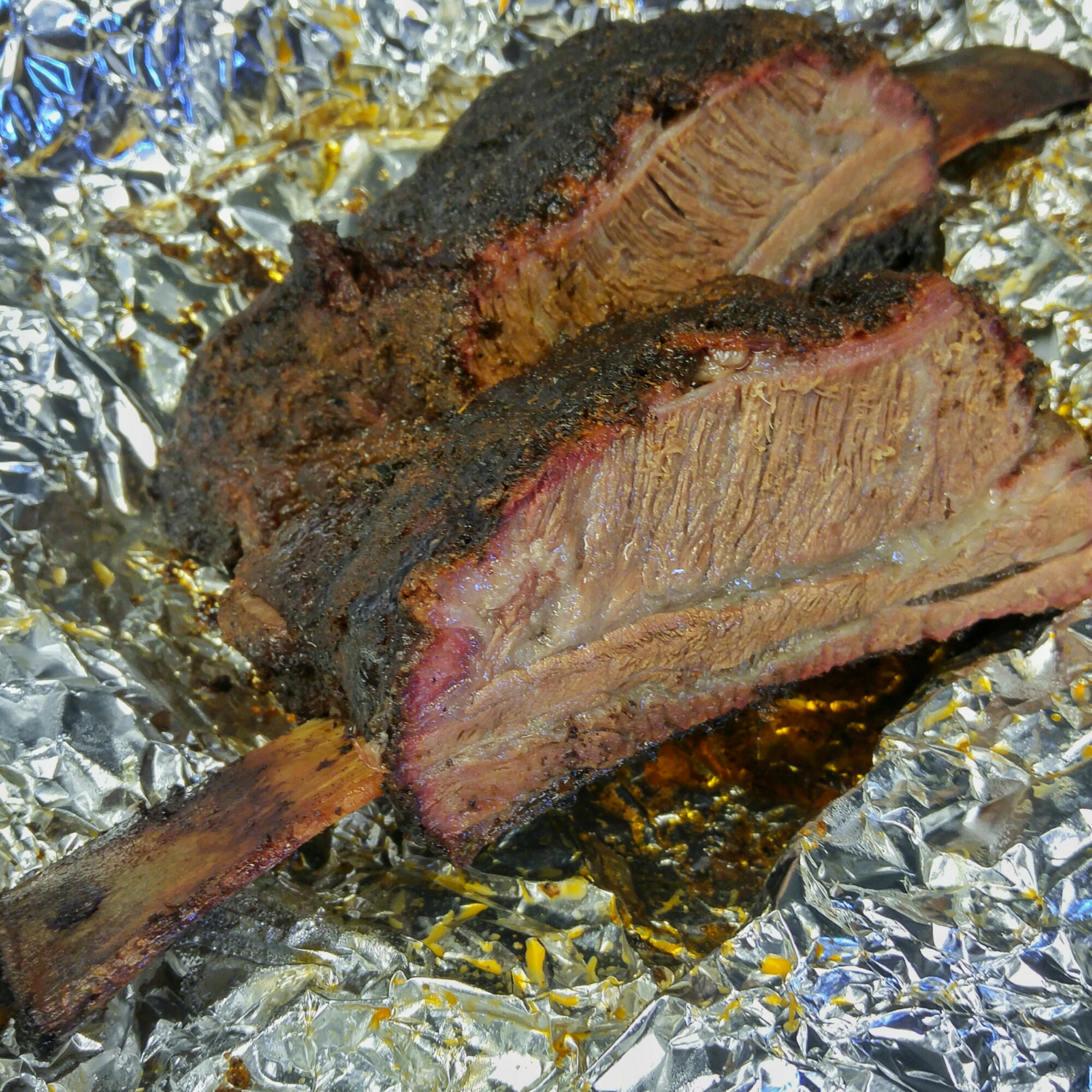 Four and a half hours in, pull em and wrap em-