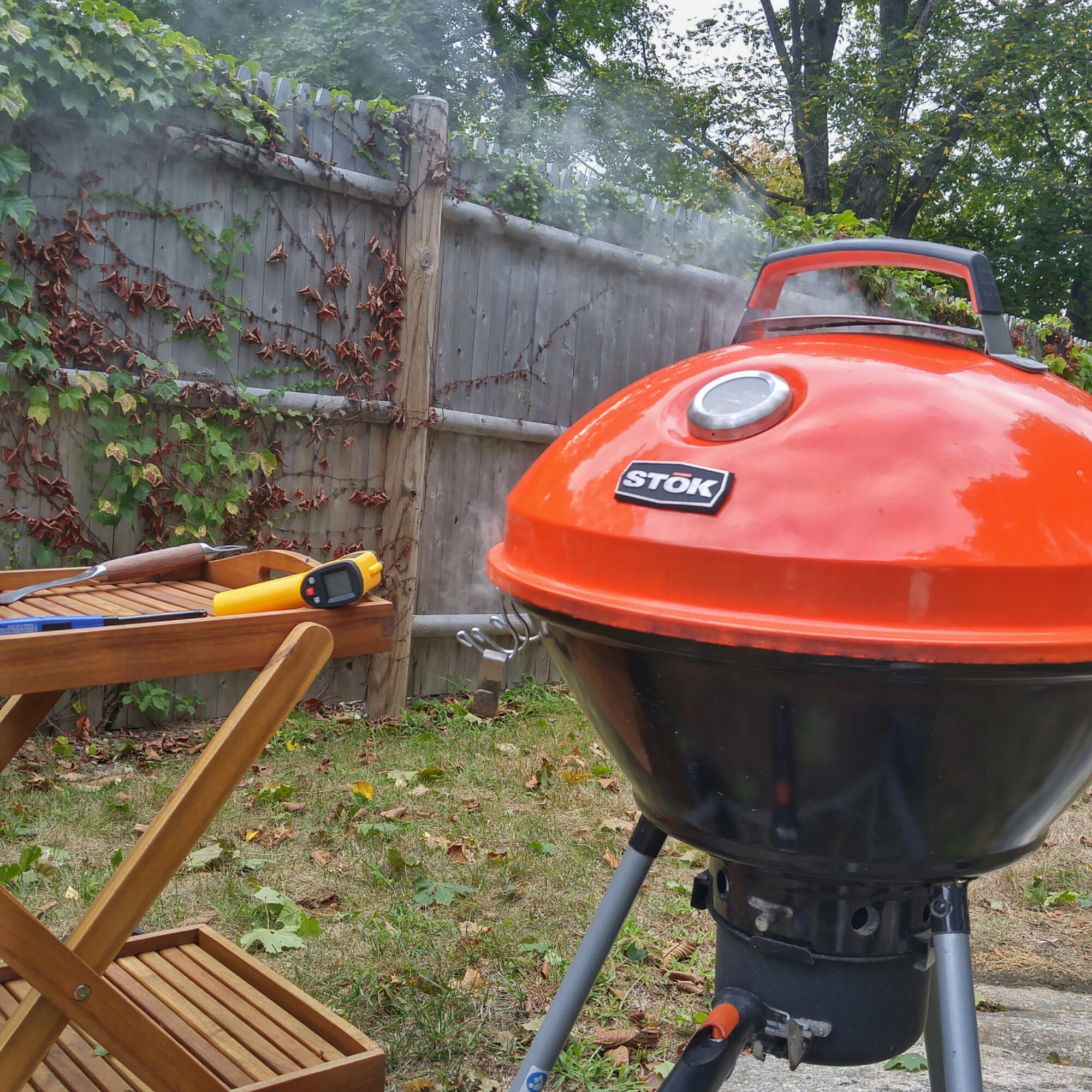 The STOK Drum is chugging along holding at 225 with the top and bottom vents about half way closed.
